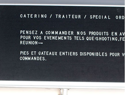 NOUS POUVONS TOUT SIMPLEMENT LIVRER LES PRODUITS DU MENU CI-DESSOUS OU VOUS PROPOSER NOS SERVICES DE TRAITEUR POUR VOS EVENEMENTS TELS QUE : PETIT DEJEUNER OU DEJEUNER DE TRAVAIL, SHOWROOM PRESSE SUR TOUTE LA JOURNEE, BACKSTAGE DEFILE. ANIMATION DE BARS A JUS DE FRUITS. GOUTER D'ANNIVERSAIRE. ETC